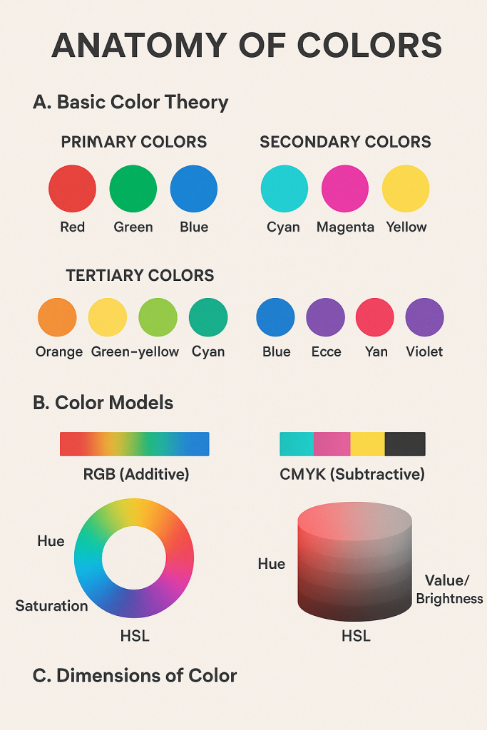 Colors can be explained scientifically, mathematically, and perceptually. Here are the main aspects: A. Basic Color Theory B. Color Models C. Dimensions of Color 2.…