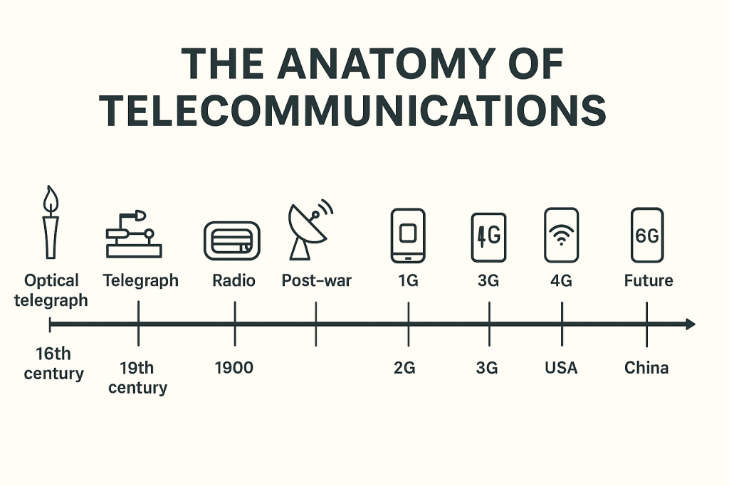 Early Pre-Telecommunication Era (16th – 18th Century) The Telegraph & Telephone Era (19th Century) Dominant players (19th century): Radio, Broadcasting & Early Wireless (20th Century…